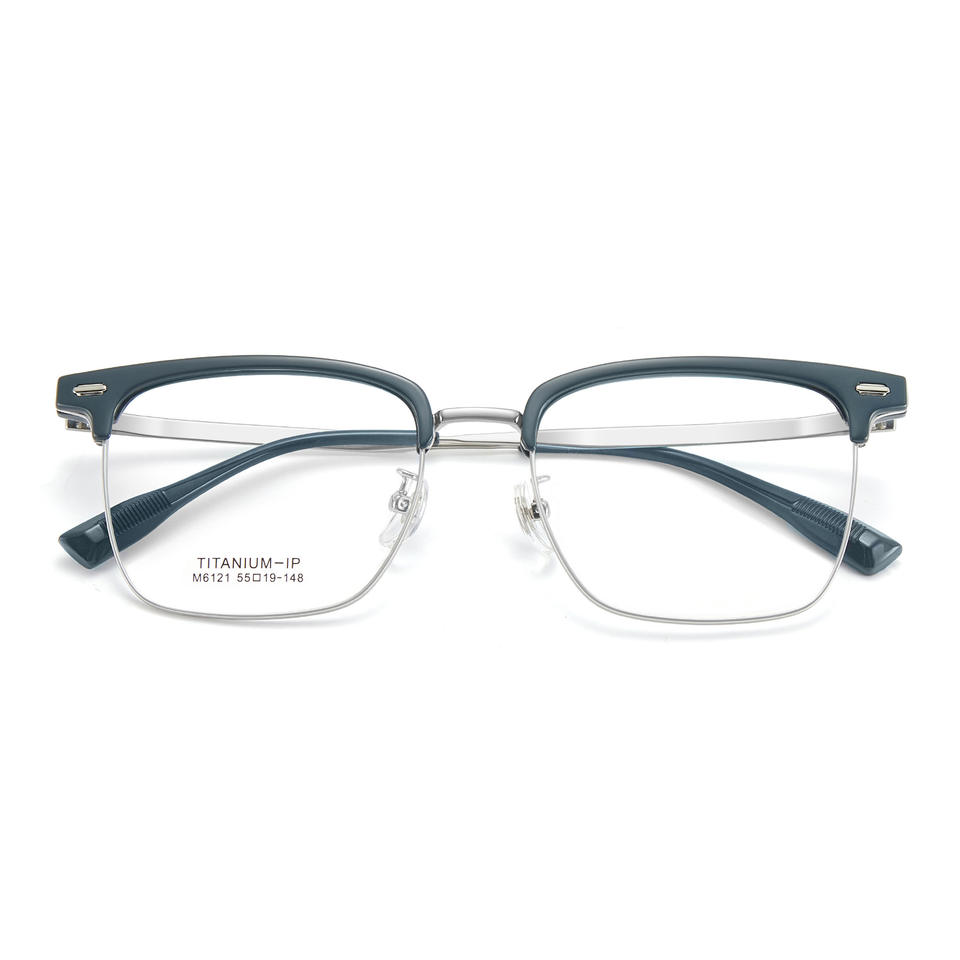 Monture de lunettes rectangulaire bleu graphite tendance M6121 en titane IP, monture complète unisexe, verres en résine confortables