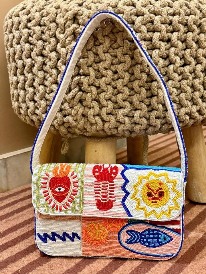 Pochette tendance brodée à la main et perlée, porte-monnaie de créateur en forme de corne perlée, pochette perlée de style Texas Longhorns pour le jour du match, sacs de soirée