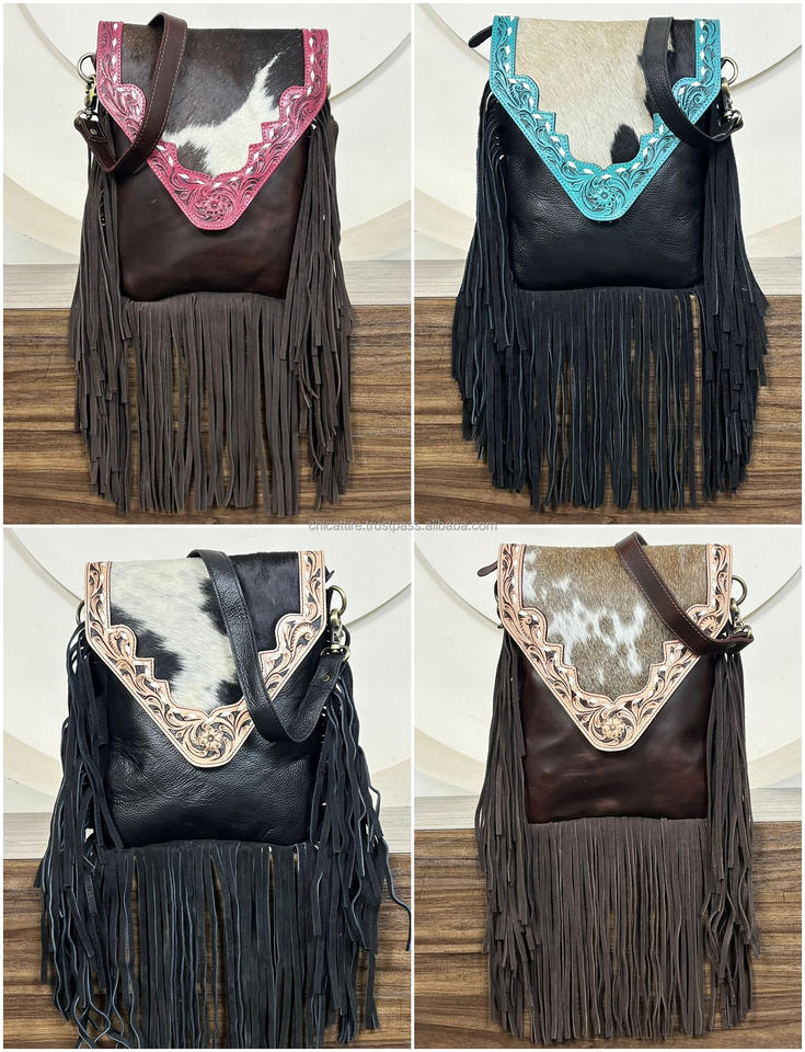 Nom du produit:Sac bandoulière en cuir de vachette à franges, travaillé à la main
