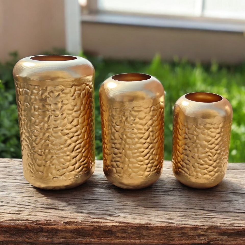 Ensemble de 3 vases tendance en acier inoxydable faits à la main, design Art Déco, finition dorée, vases décoratifs de table avec base antidérapante pour Pâques