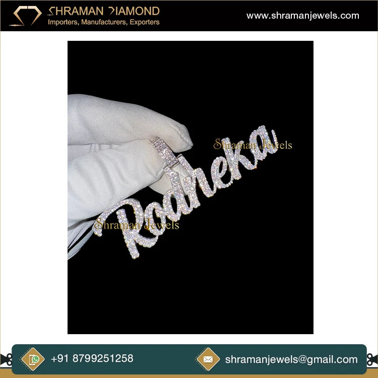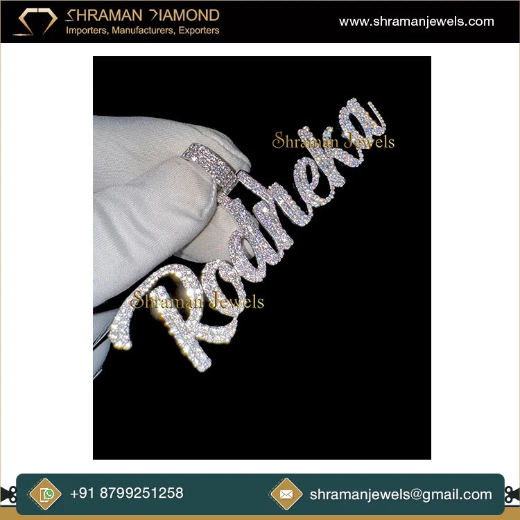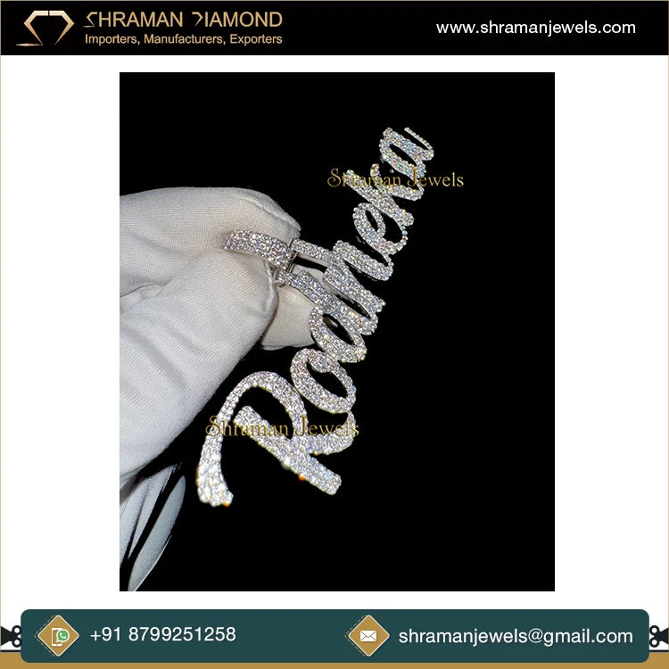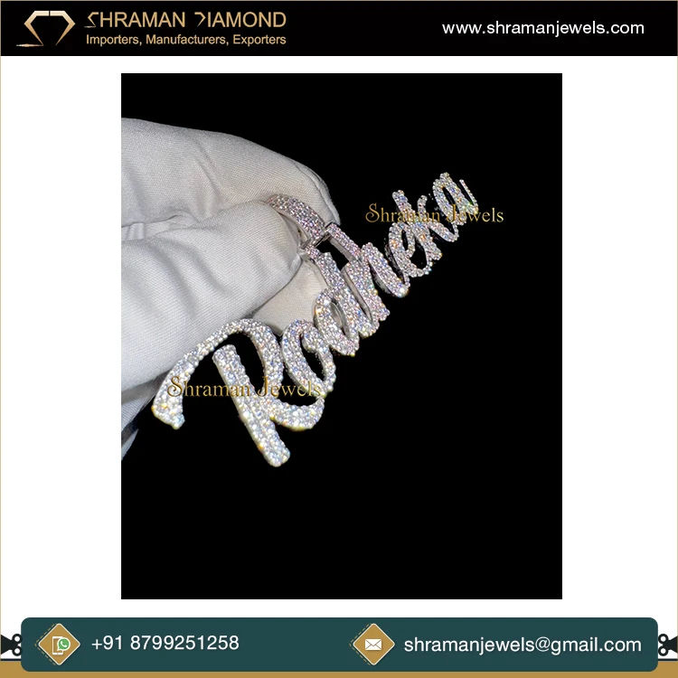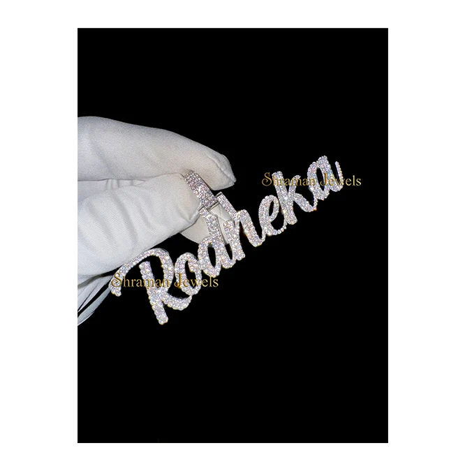 Pendentif tendance hip-hop en argent 925 plaqué rhodium, personnalisé avec initiale en lettres cursives, serti de diamants, collier fin, charme unisexe