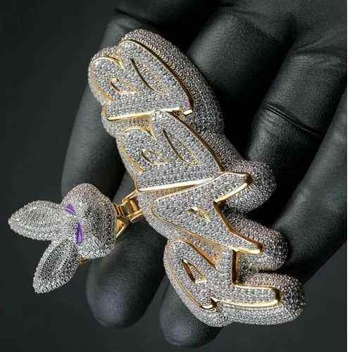 À la mode Hip Hop nom pendentif personnalisé Moissanite diamant 925 argent Sterling glacé lapin caution conception pendentif pour unisexe