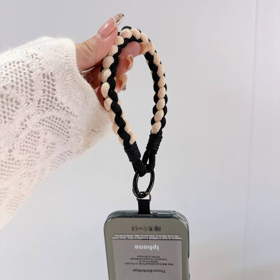 Lanière de téléphone tressée tendance style INS, courte, couleur vive, sangle de poignet, sangle de main, cordon anti-perte pour téléphone, transport à la main