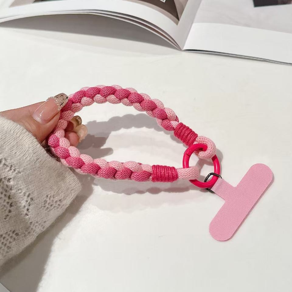 Lanière de téléphone tressée tendance style INS, courte, couleurs vives, bracelet de poignet, sangle de main, cordon anti-perte pour téléphone, vente en gros, porte-clés