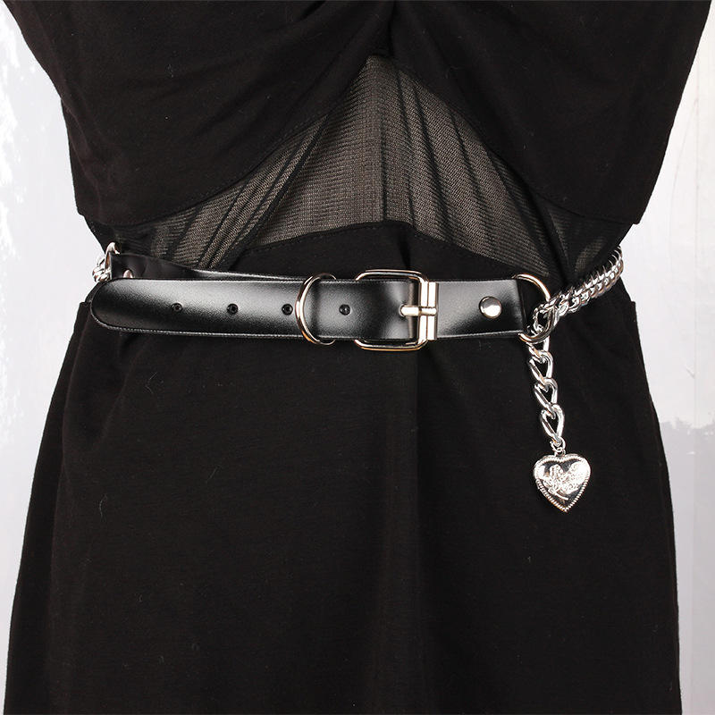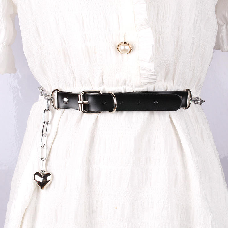 Chaîne de taille tendance en cuir avec pendentif cœur, chaîne en métal pour femme, accessoire de mode pour le quotidien
