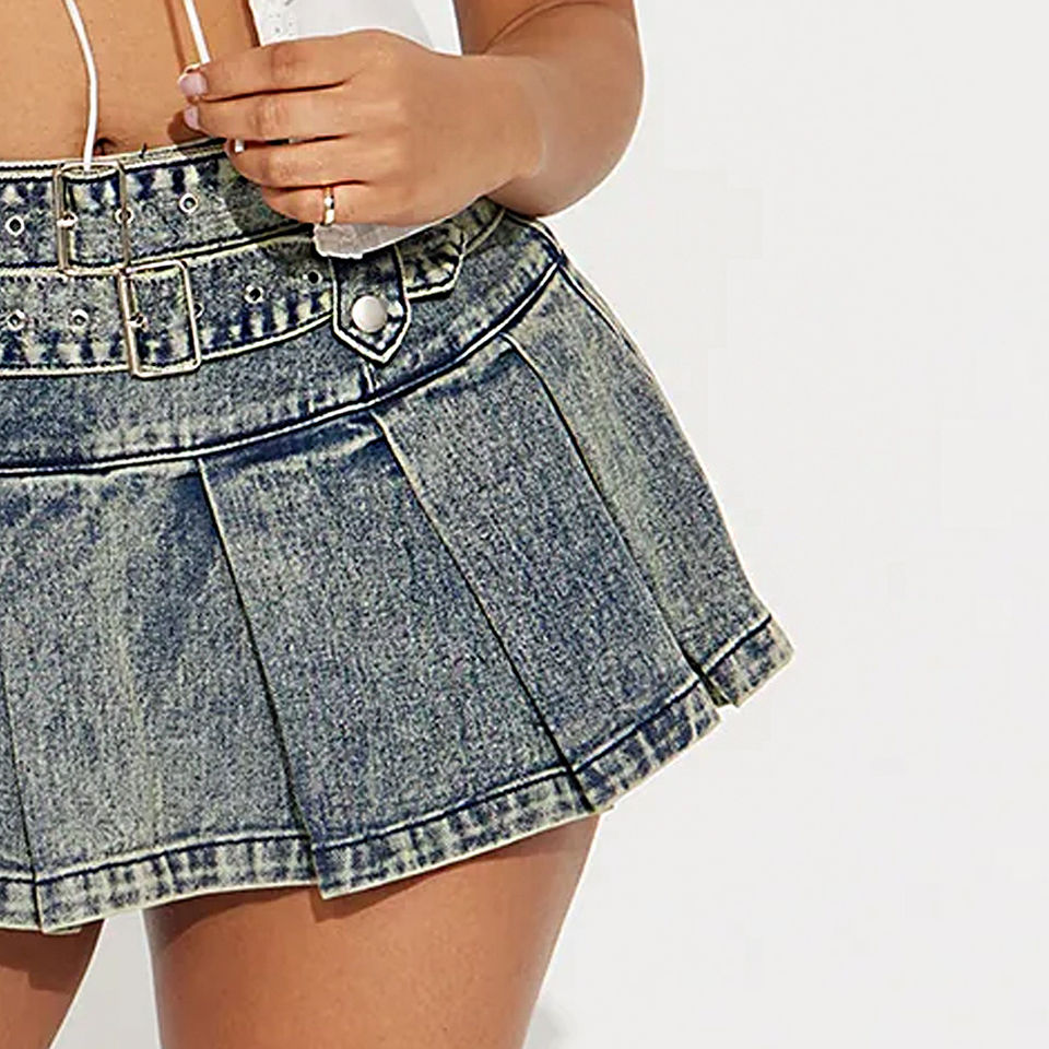 Jupe en jean midi tendance délavée à boutons apparents pour femme – Prix de gros – Taille mi-haute – Vêtement décontracté pour femme