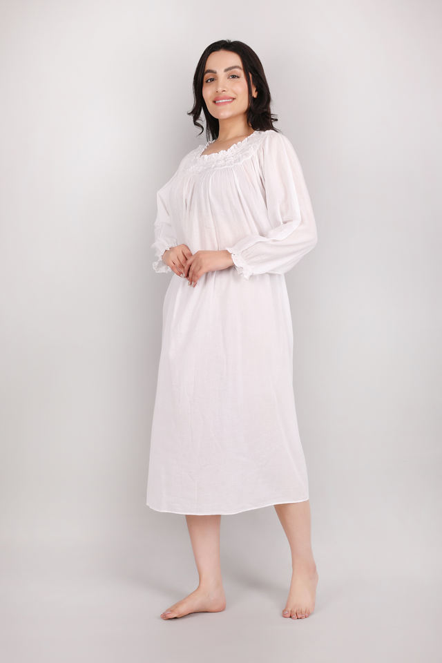 Trendy Long Cotton Night Gown for Women Quick Dry Breathable Smooth Stylish All Season Nighty Nightdress Nightwear