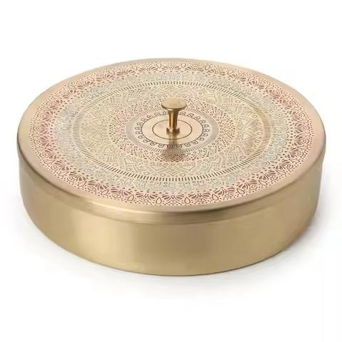 Boîte d'organisation d'épices en métal tendance avec couvercle décoratif, conteneur de rangement pour masala de cuisine, herbes et assaisonnements de cuisson