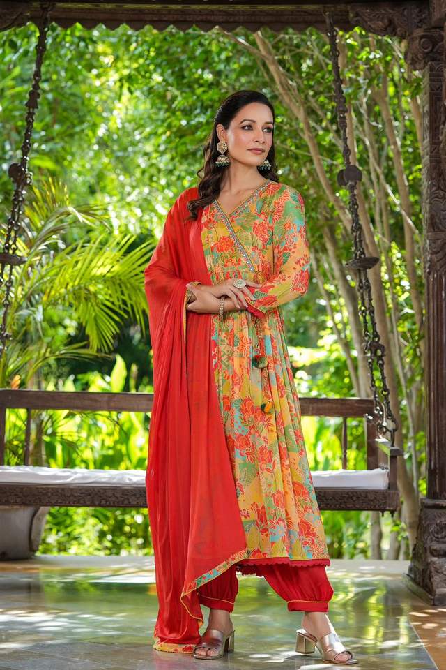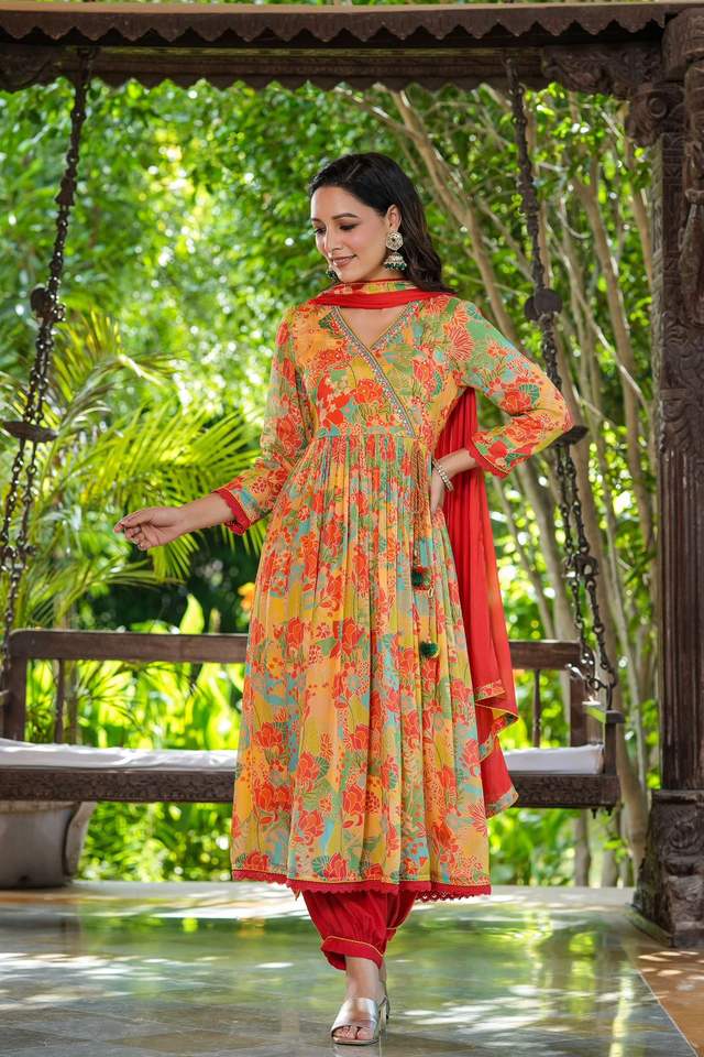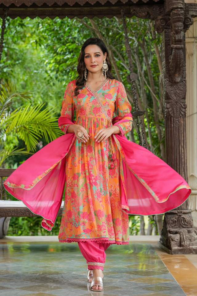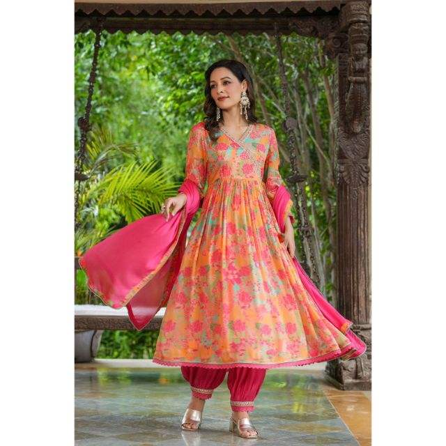 New Designer Chinon Kurti Pant With Dupatta