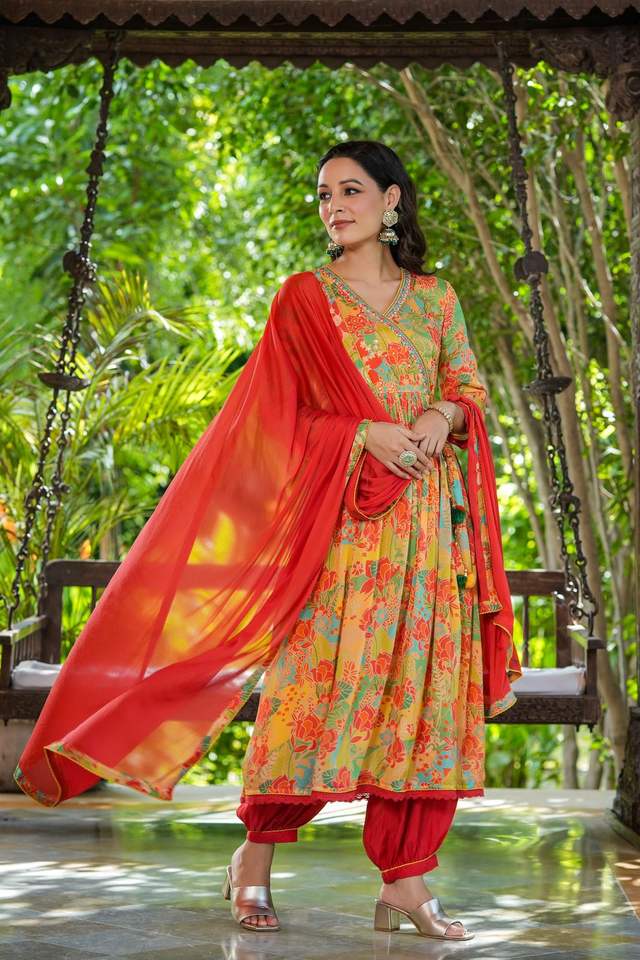 Style moderne à la mode lourd et beau pantalon Chinon Kurti le plus tendance avec Dupatta avec travail imprimé au prix de gros