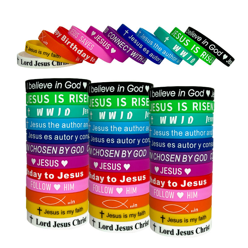Trendy New Jesus Wristband Silicone Promotional Religious Rubber Bracelets with Printed Design
