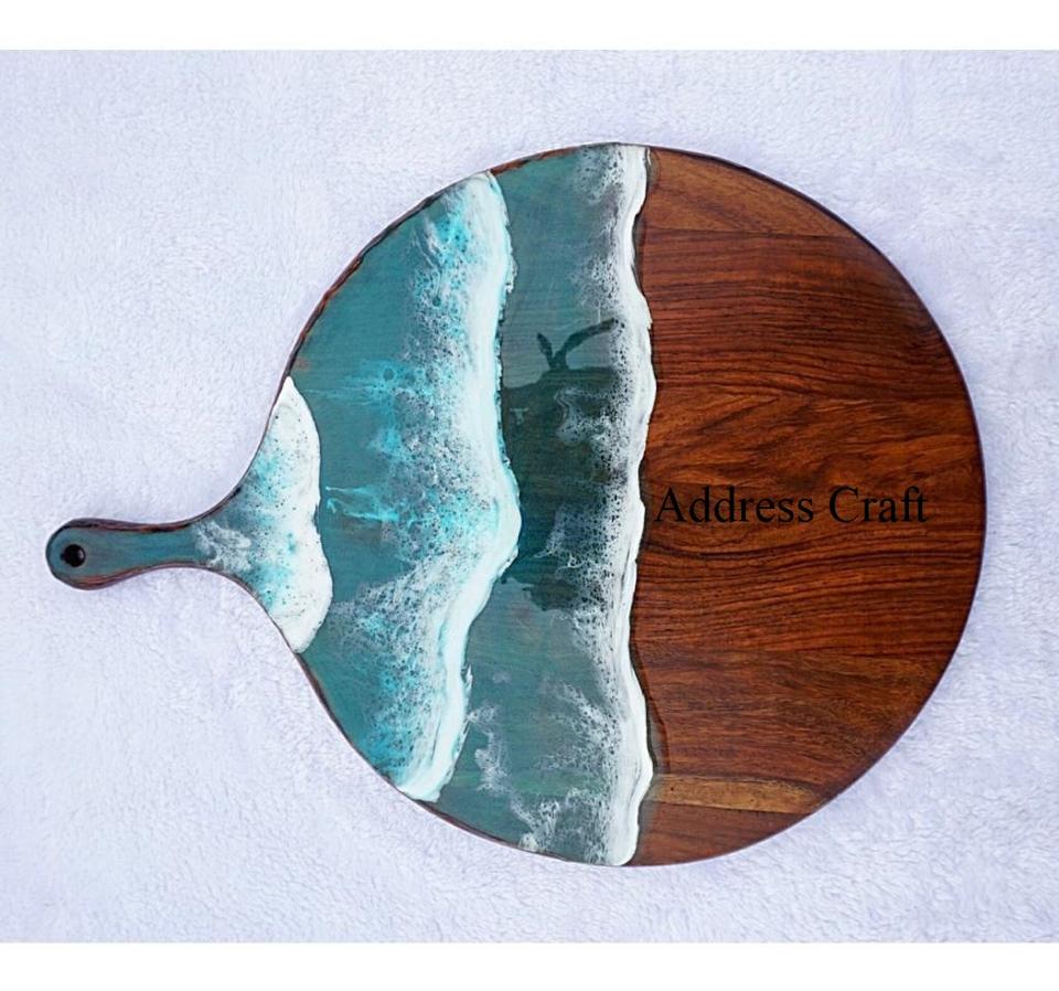 Planche à fromage époxy à la mode Ocean Wave Design planche à découper luxueuse planches à petit-déjeuner blocs à découper rectangulaires avec poignée