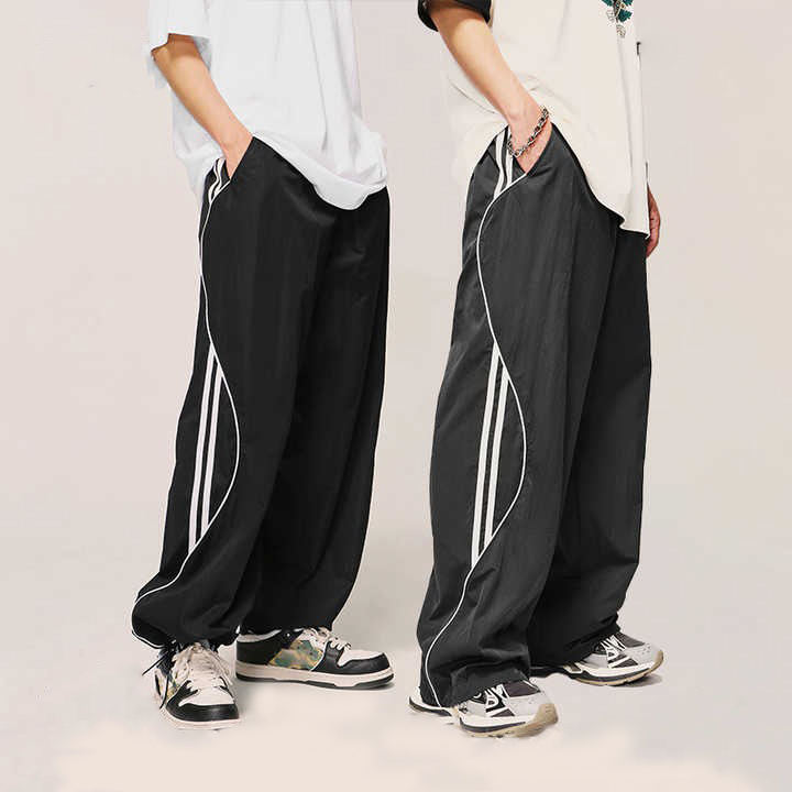 Pantalon surdimensionné à la mode hommes avec rayures latérales 40% Nylon 60% Polyester noir gris pantalon unisexe en stock faites votre conception personnalisée