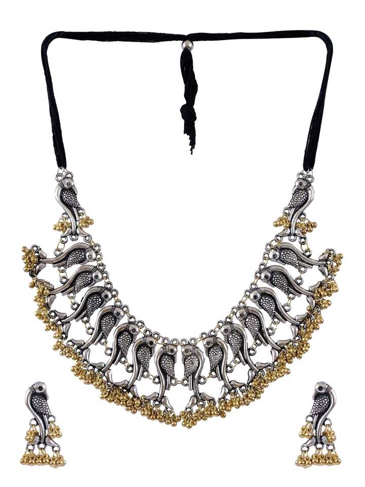 Nom du produit:Ensemble de créateur et boucles d'oreilles oiseaux bicolores en argent oxydé