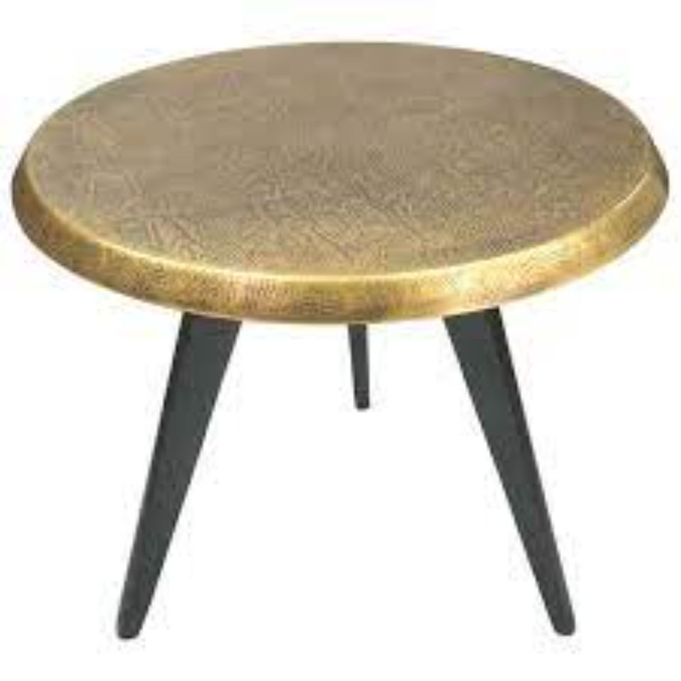 Nouvelle Arrivée : Tables d'Appoint de Luxe à Motifs Tendance, Plaqué Or Haute Qualité, Métal de Qualité Supérieure, Plateau Rond avec Pieds en Métal Noir