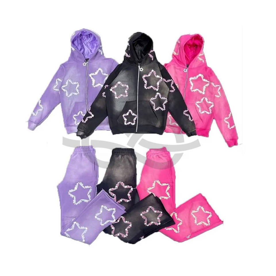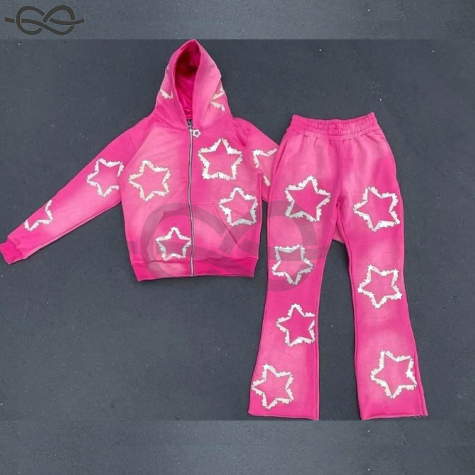 Pantalon évasé imprimé bouffant à la mode survêtement survêtement unisexe Vintage Full Flare Hoodies Jogger Set Look élégant