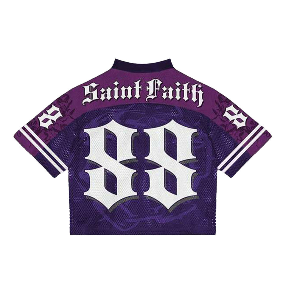Tendance violet maille col en V à manches courtes personnalisé graphique Sublimation maillot de Football américain surdimensionné haut unisexe