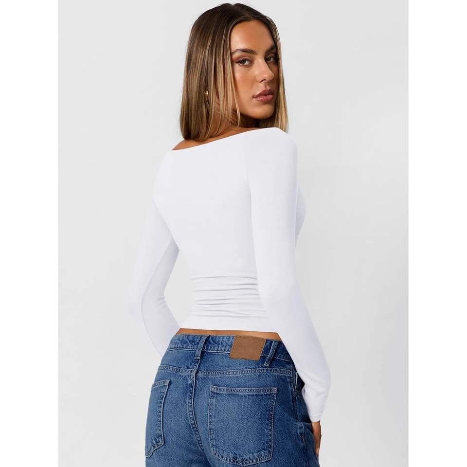 Queen Womens Trendy Boat Neck Long Sleeve Fitted Basic Tee Fall Top Knit Tops for Going Out Women's Clothing