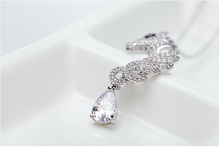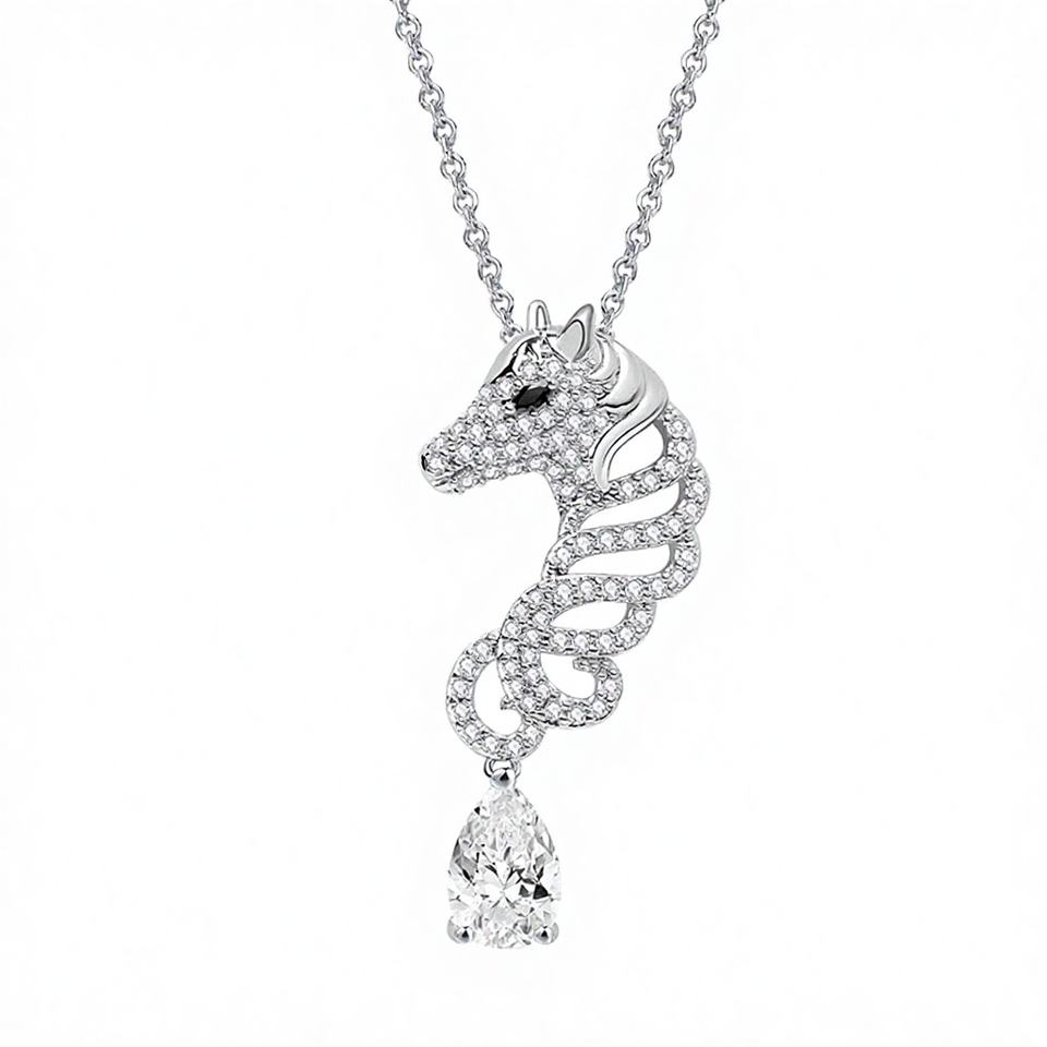 Collier tendance avec pendentif tête de cheval en alliage plaqué rhodium et cristaux | Bijoux équestres en zircon pavé avec pendentif en forme de poire, cadeau pour femme