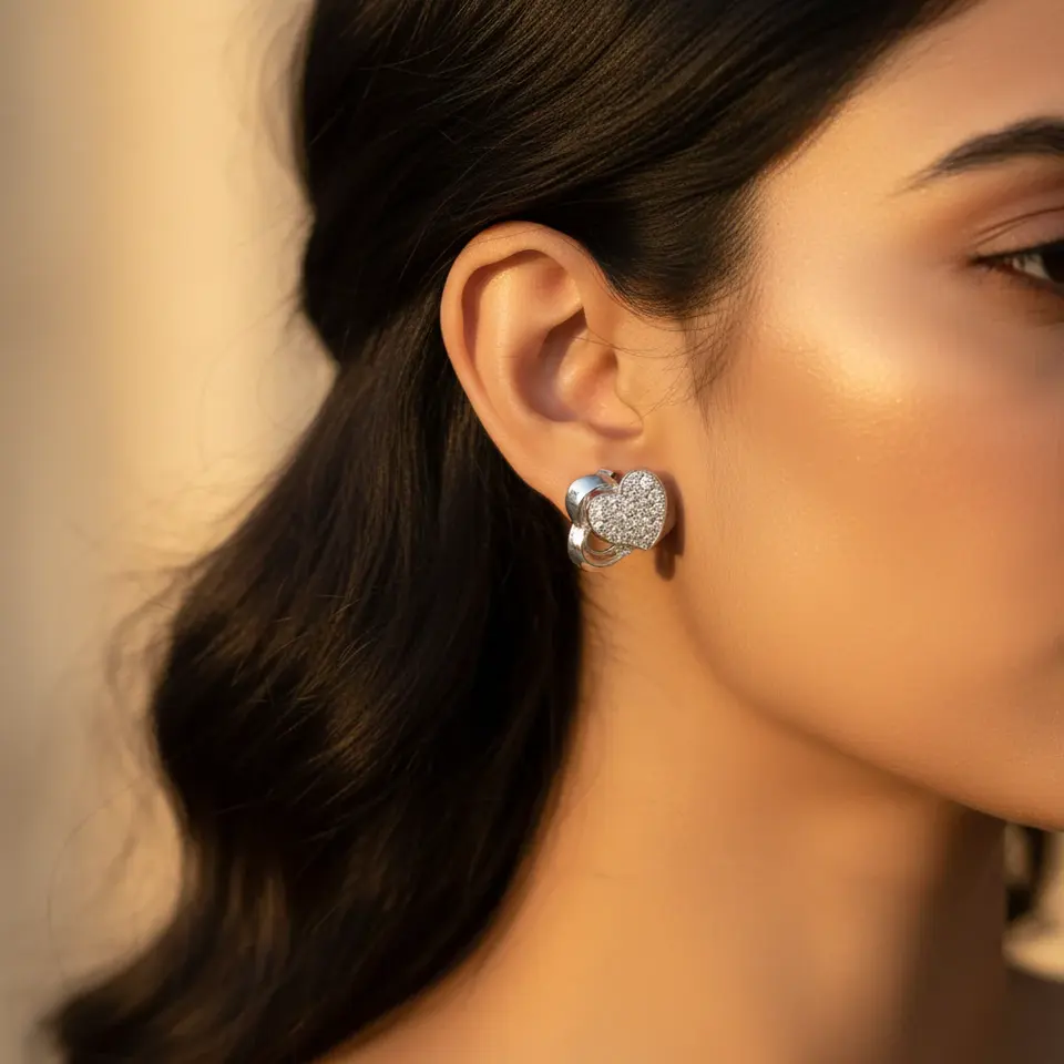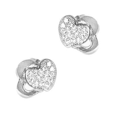 Trendy Silver Heart Stud Earrings for Women Dainty Daily Religious Jewelry Pearl Diamond Rhodium Gold Made Alloy for Parties
