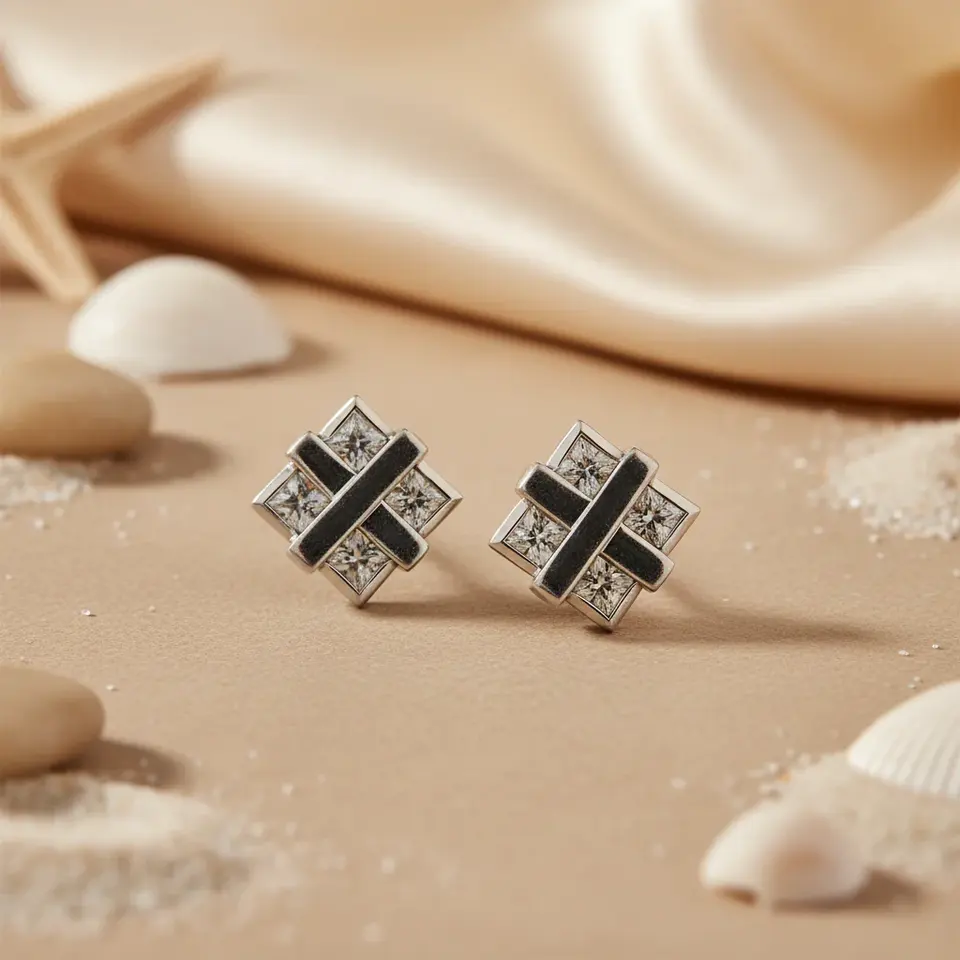 Trendy Silver Square Stud Earrings for Women Square Cut Hoop Earrings Zircon Pearl Rhodium Plated Brass for Parties Religious