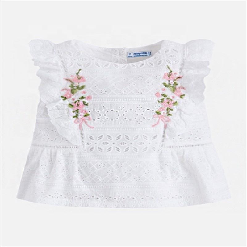 Haut blanc tendance de printemps pour filles, nouvelle collection 2020, avec belle broderie, à volants, manches courtes, chemisier parfait et mignon pour votre Cutie Pie