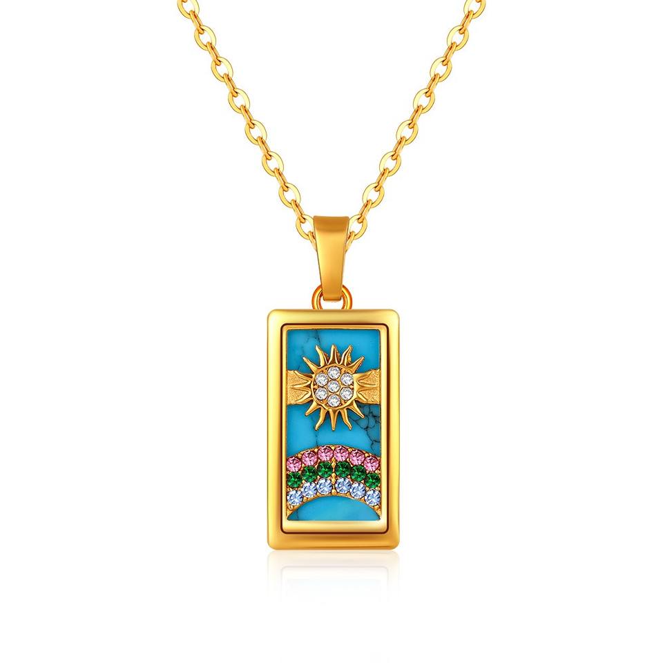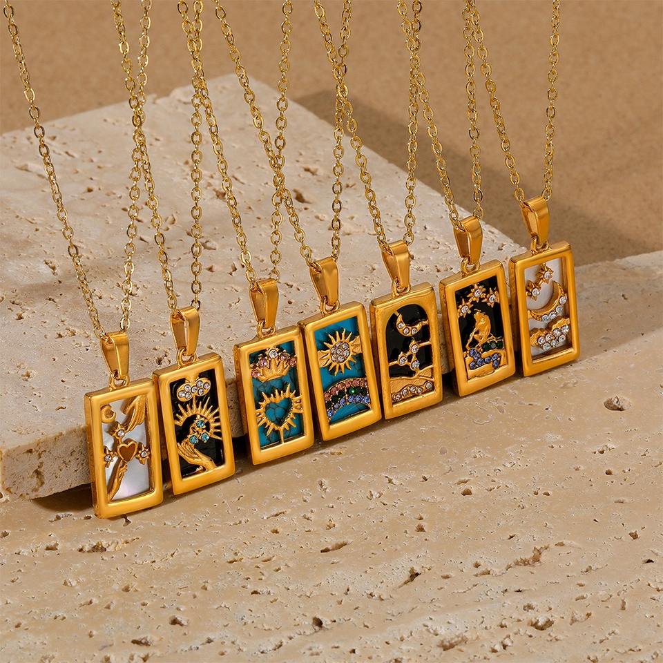 À la mode carré coloré émail Zircon Tarot cartes pendentif collier 18k plaqué or colliers en acier inoxydable pour les femmes