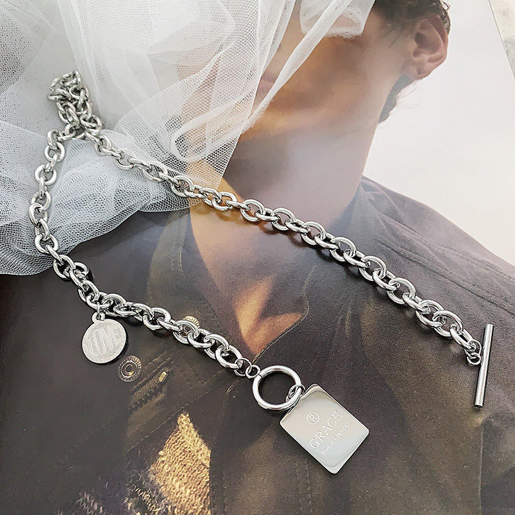 Trendy Stainless Steel Cross Necklace Hip-Hop Personality Instagram Influencer Collarbone Chain Pendant Party Sweater Chain