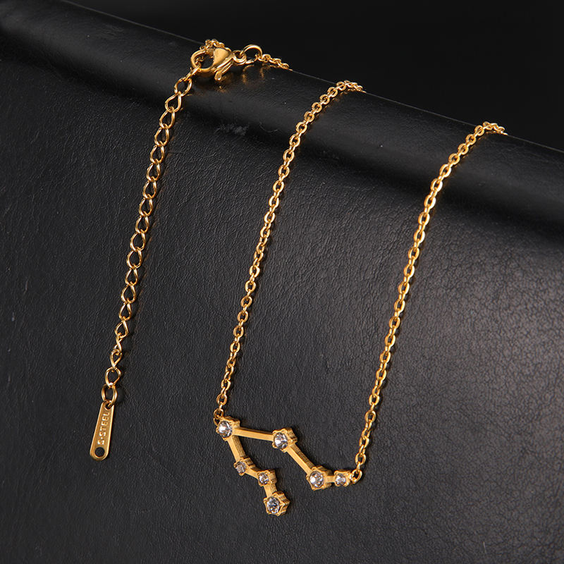Collier tendance de style zodiaque en acier inoxydable pour femmes, chaîne en strass, avec symbole astrologie, zodiaque, breloque, en or, nouvelle collection 2020