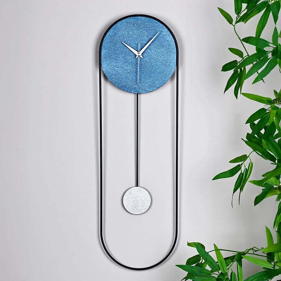 Horloge murale bleue au style tendance avec fonction de mouvement et de son, idéale pour le salon et la chambre, ajoute une touche de divertissement et de décoration interactive.