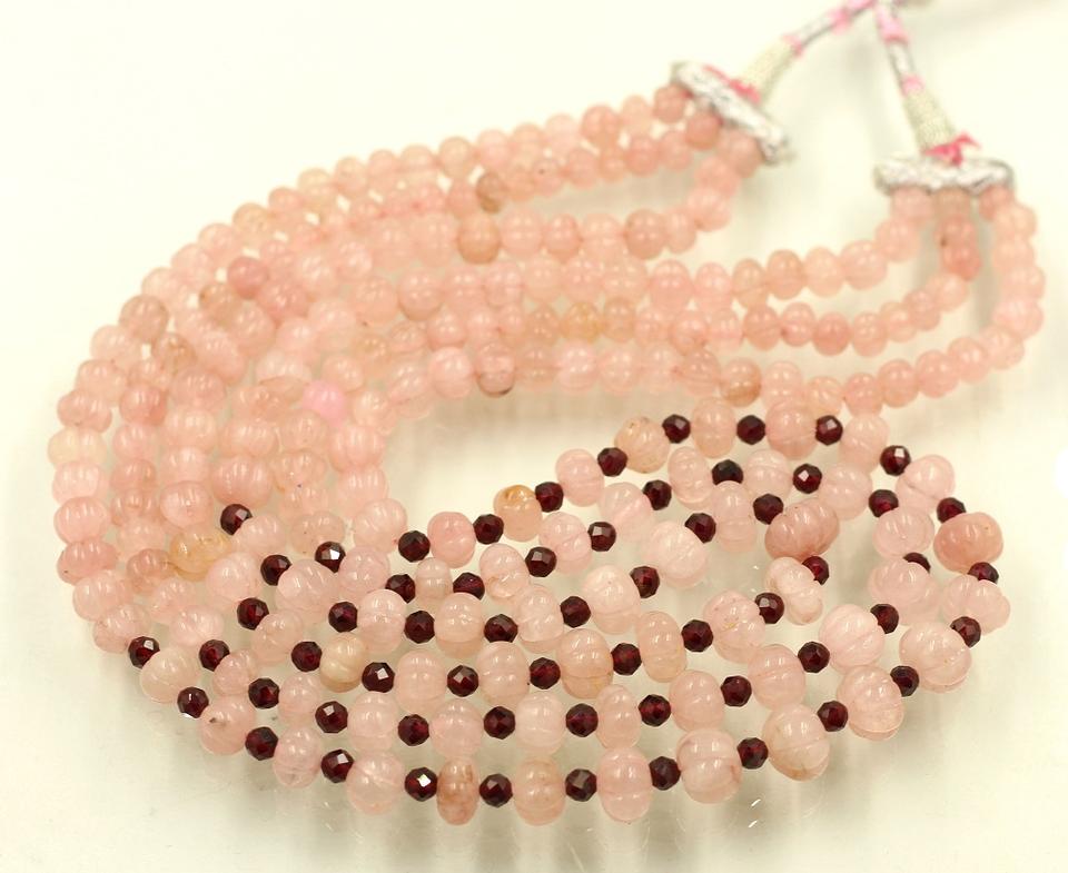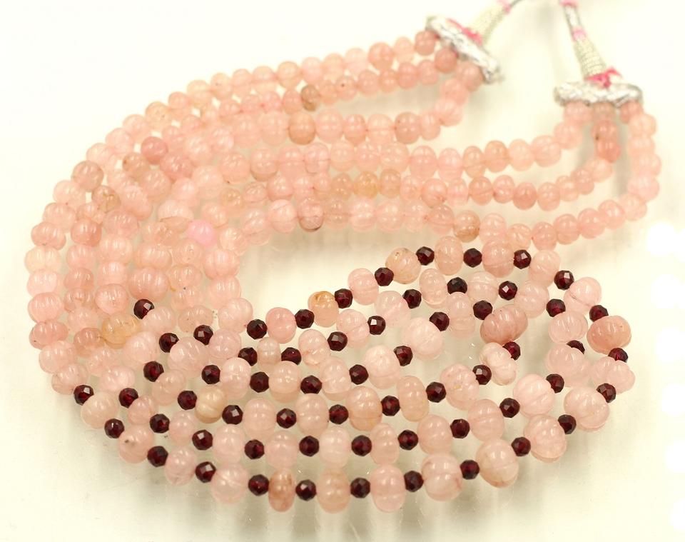 Collier tendance en perles de quartz rose et de grenat, style citrouille, 20 pouces, pour femmes, idéal pour les fêtes chrétiennes et les mariages