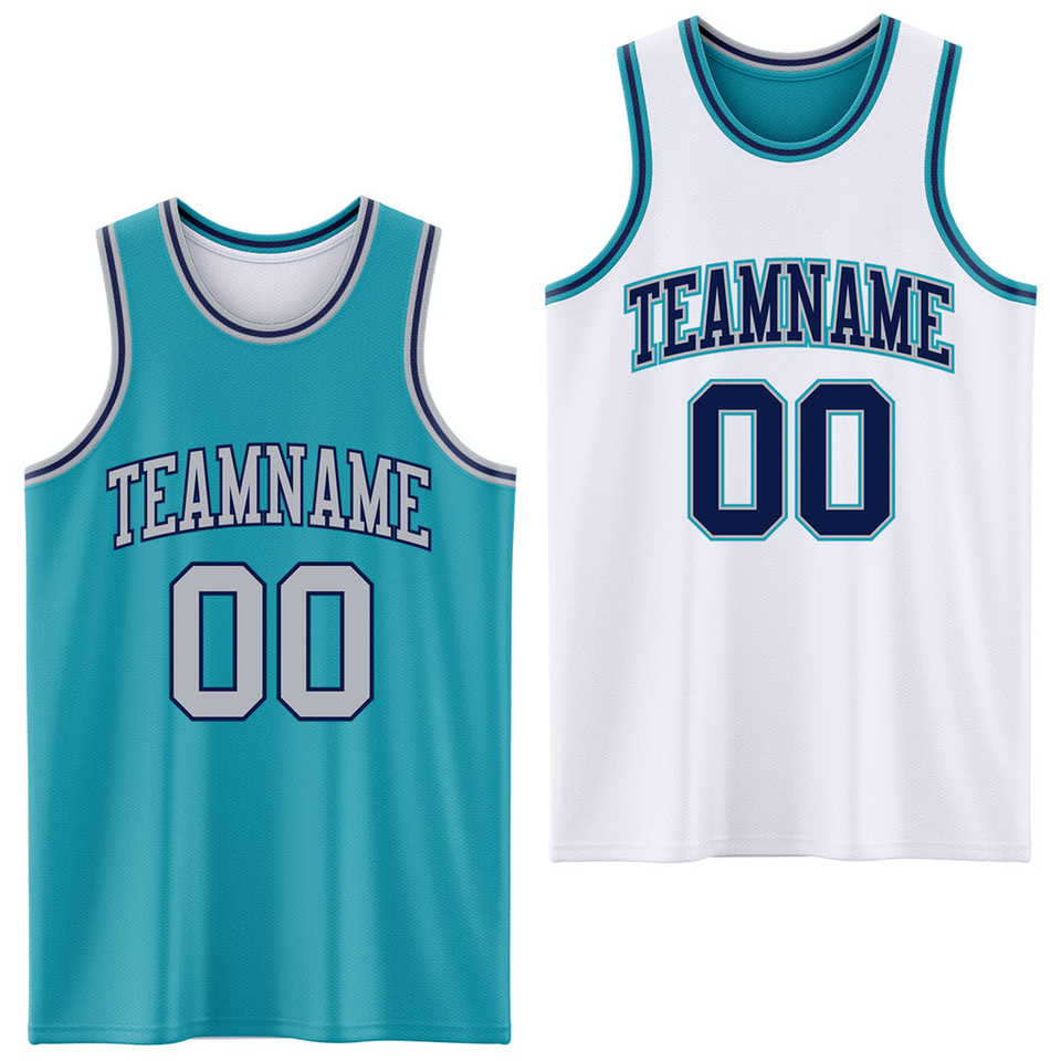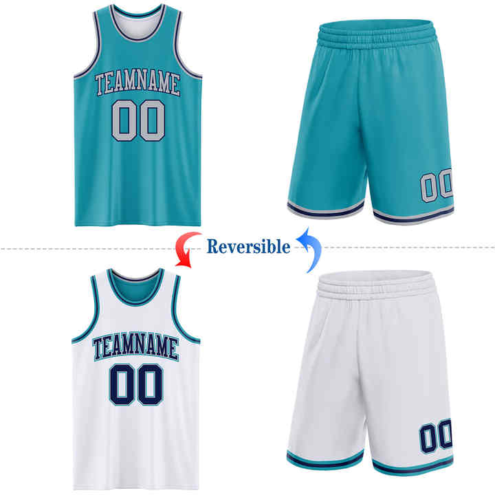 Ensemble d'uniformes de basketball sublimés réversibles tendance, vert sarcelle et blanc, en maille respirante, maillot d'entraînement pour hommes, séchage rapide, tenue de sport pour équipe