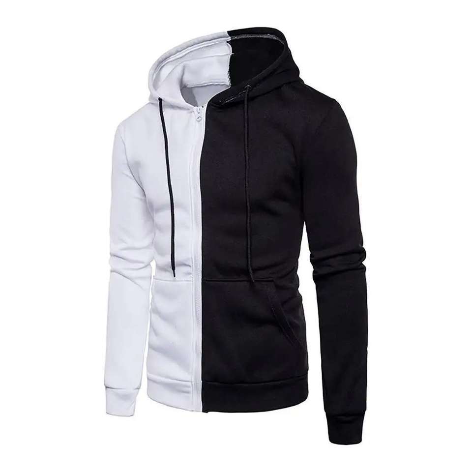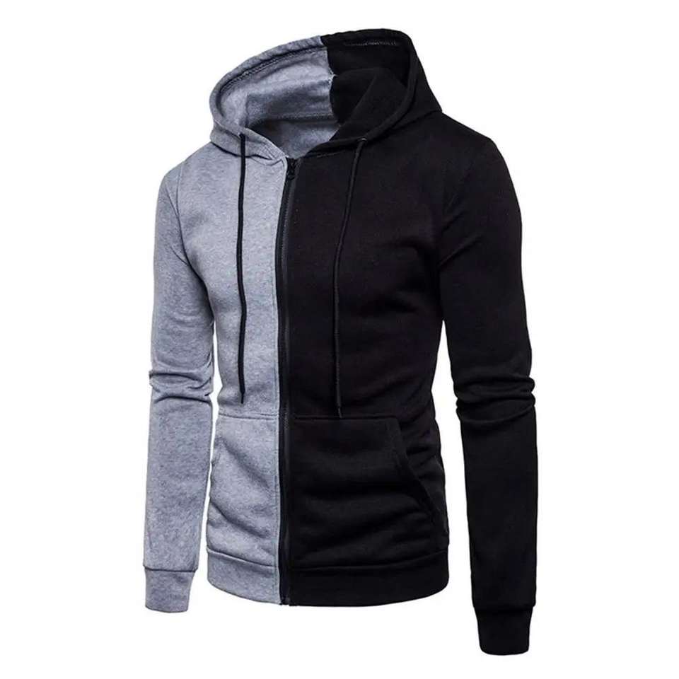 Sweat-shirt tendance 100% coton, doublé en polaire, respirant, avec poches avant, fermeture éclair, chaud, pour homme, couleur unie, en peluche, pour l'hiver