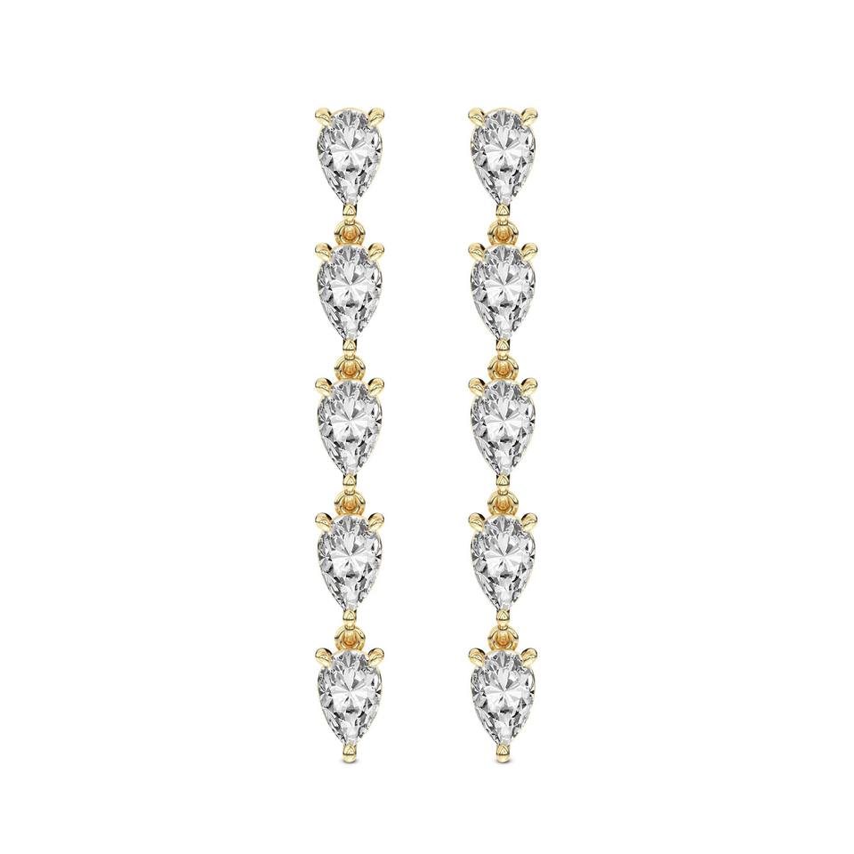 À la mode Unique Design 18K Or Massif 5 Pierre Poire Cut Lab Grown Diamant Classique Fiançailles De Mariage Les Femmes Porter Dangle Drop Boucle D'oreille