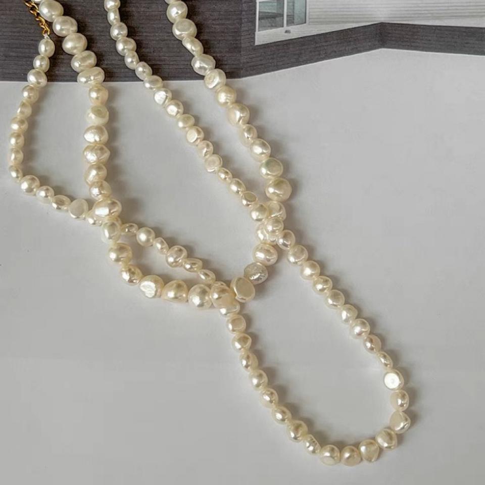 Collier tendance et polyvalent en or 14 carats, chaîne de clavicule, collier de perles d'eau douce naturelles de haute qualité pour femmes, lumière intense