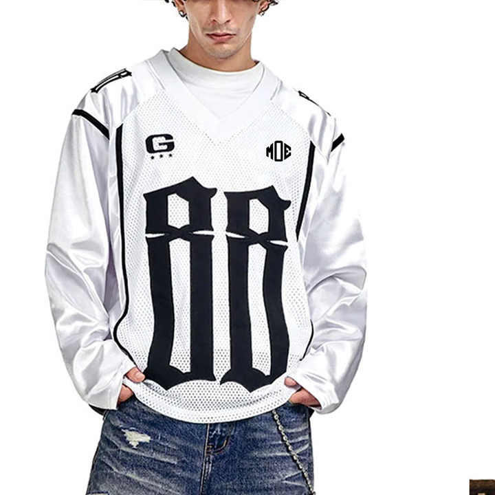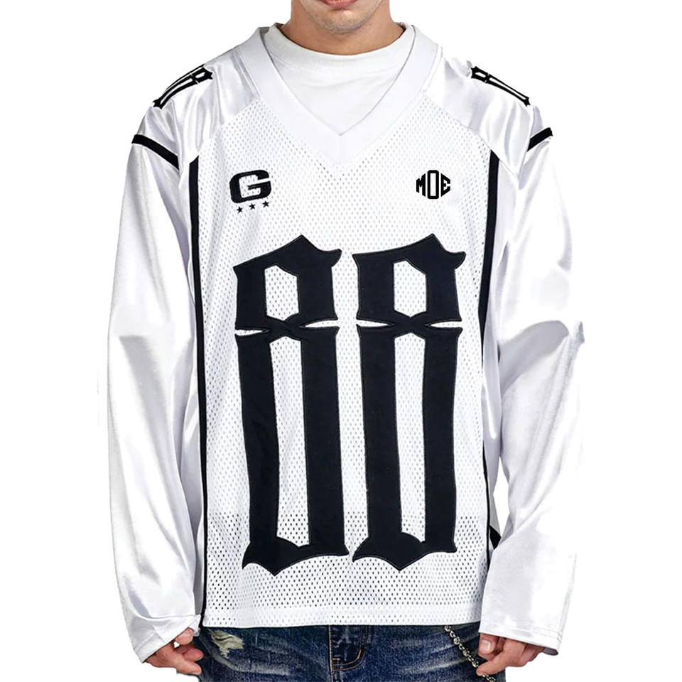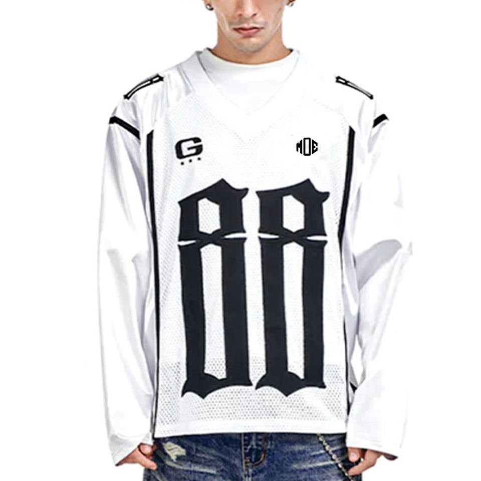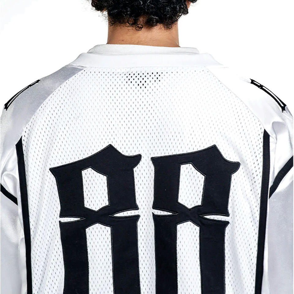 Maillot de football américain tendance blanc pour homme, à manches longues, avec empiècements en mesh, style 230 GSM, en polyester respirant, fournisseurs OEM personnalisés en gros