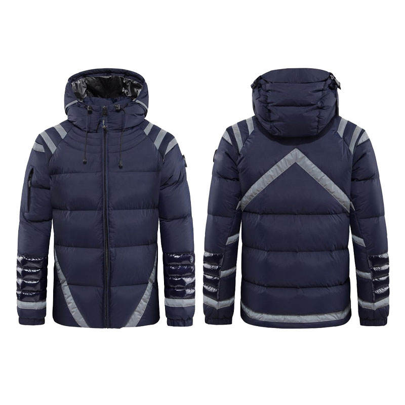 Trendy Winter Cotton Jacket for Men Hooded Stand Zipper Warm Padded Outdoor Hiking Training Sports Coat Canvas Team Uniform