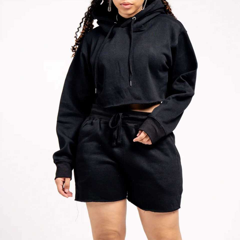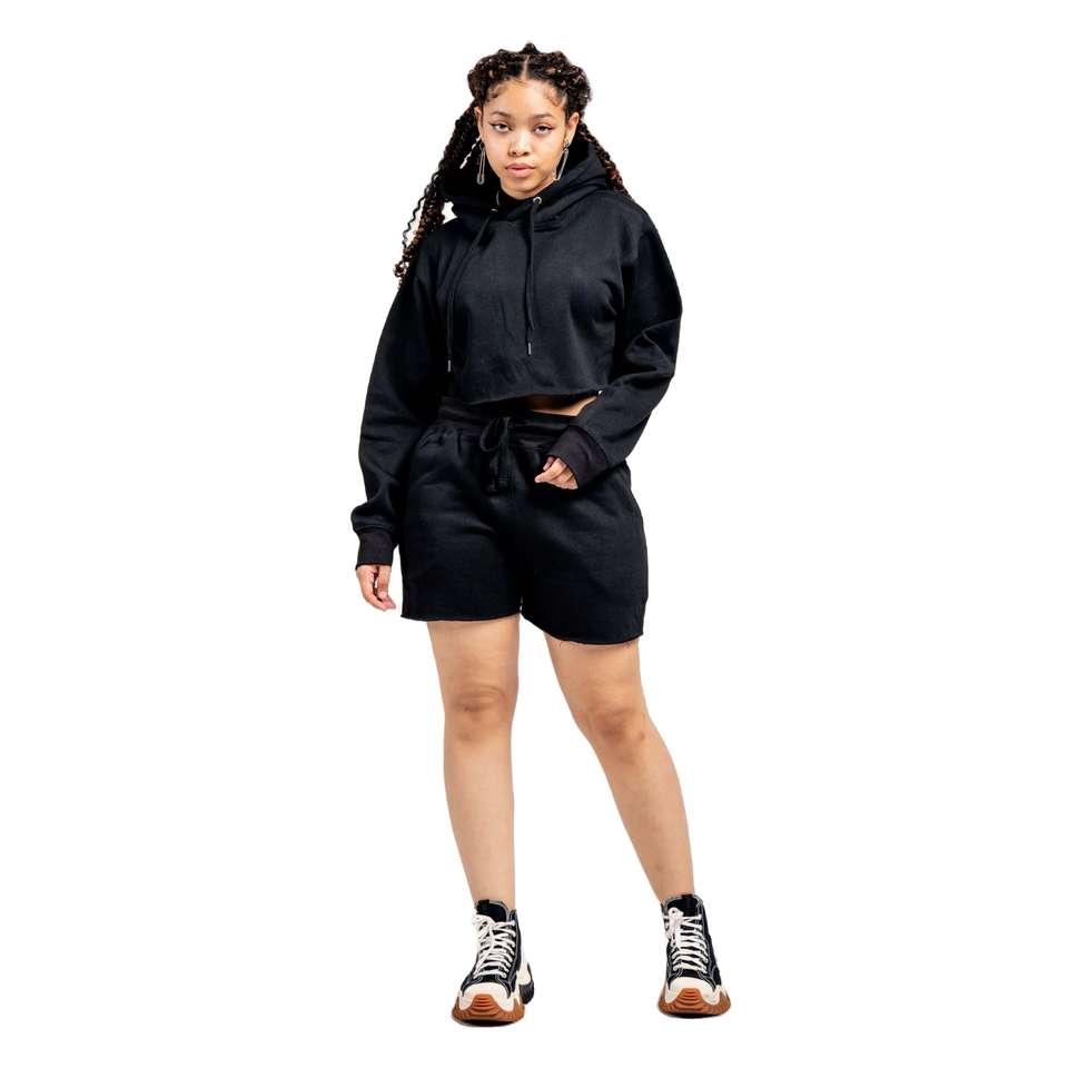 Trendy Women Fleece Crop Top and Shorts 2 piece Set - Soft, Cozy, and Ideal for Lounging, Casual Outfits, or Relaxing Indoors