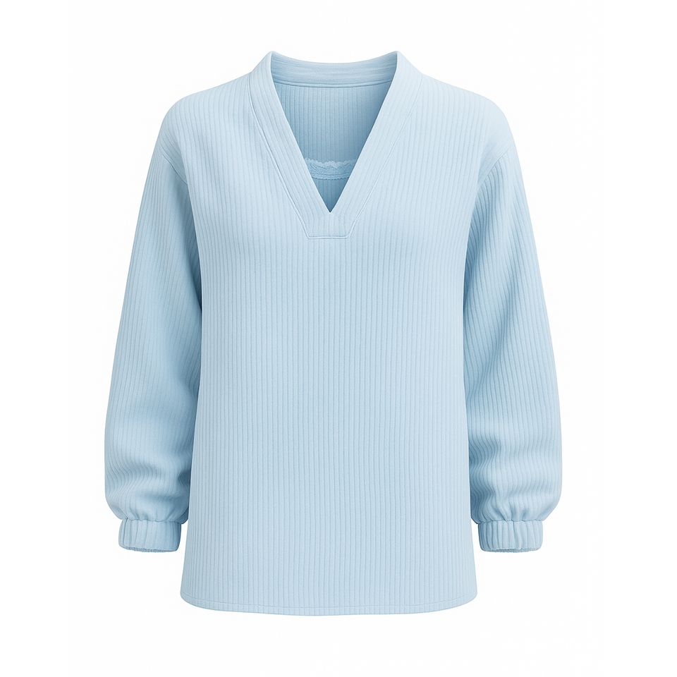 Tunique tendance pour femmes en tricot gaufré côtelé, col en V, au-dessus du genou, douce, légère, manches longues, pull parfait pour tous les jours