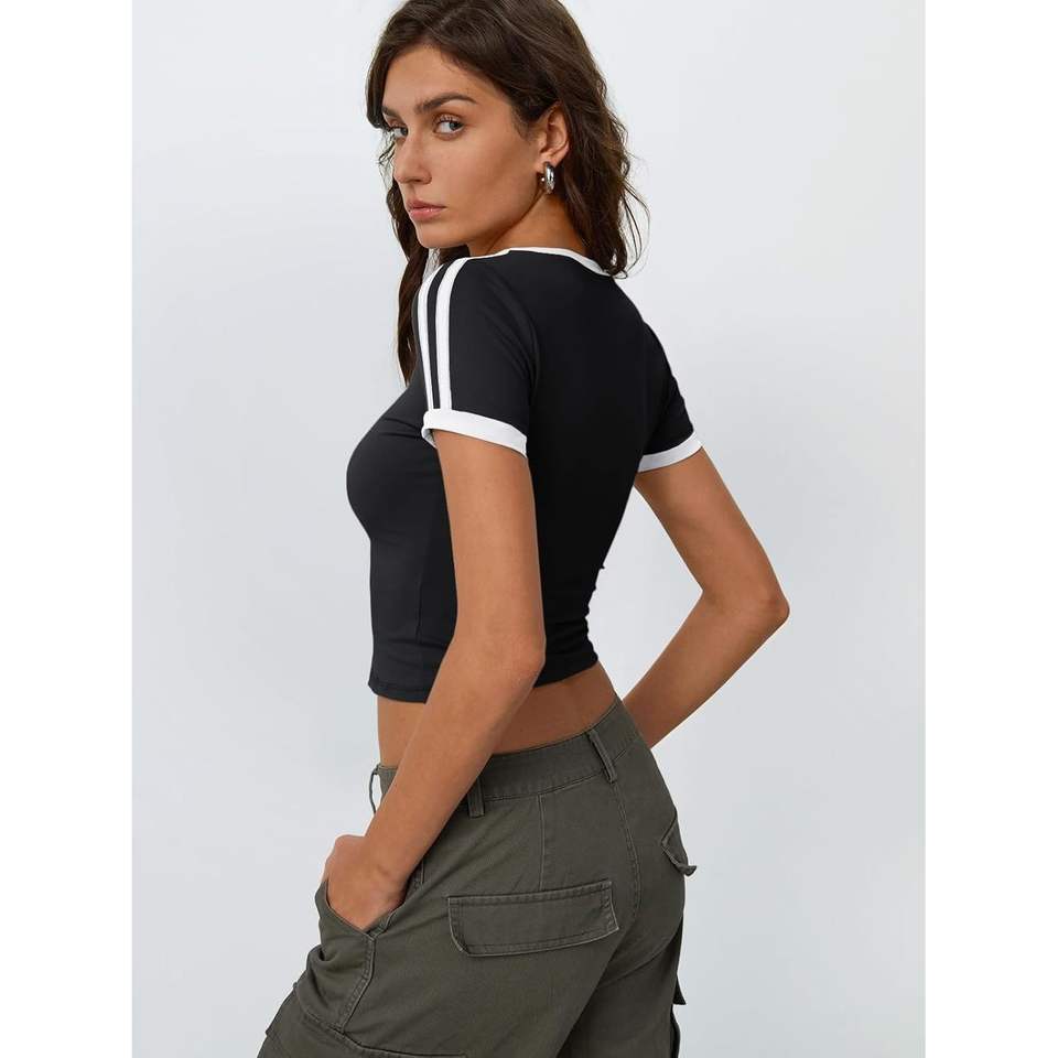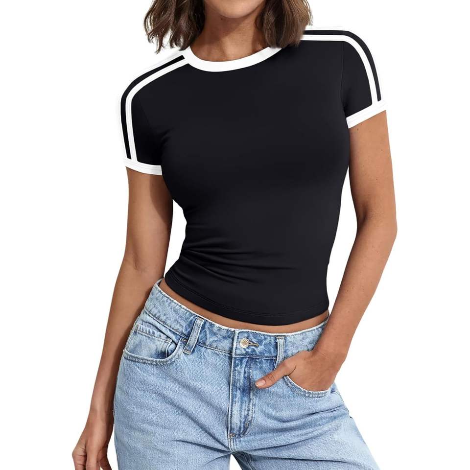 Hauts courts à la mode Y2K pour femmes t-shirts de base d'été de la reine avec des manches courtes mignonnes pour sortir ou faire du yoga