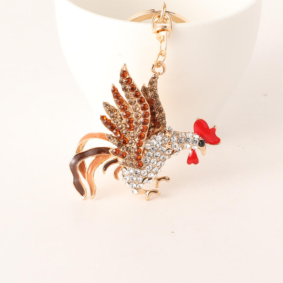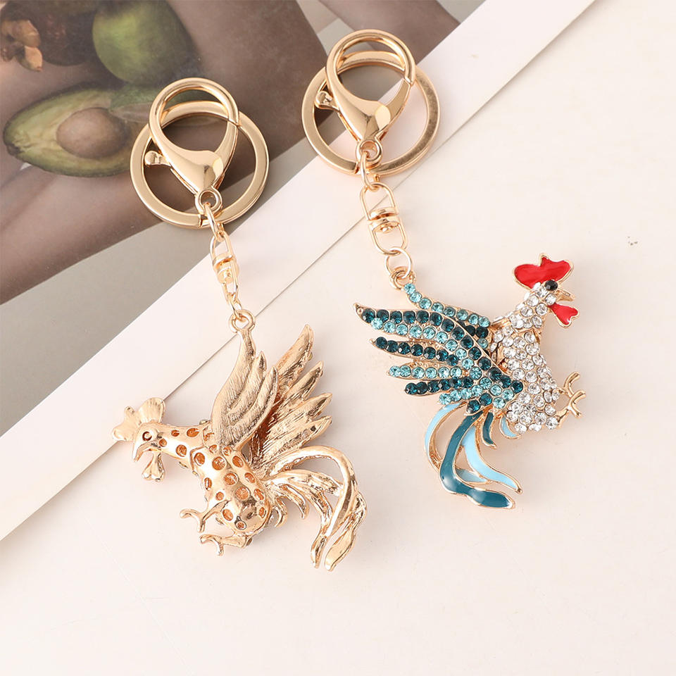 Porte-clés vintage en alliage de zinc tendance avec signe du zodiaque chinois, charme de poulet, émail, strass, pour cadeau de Noël