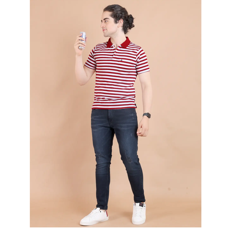Demi manches rouges à la mode et confortables pour T-shirt à col polo 100% coton-Vêtements décontractés de qualité supérieure pour toutes les occasions