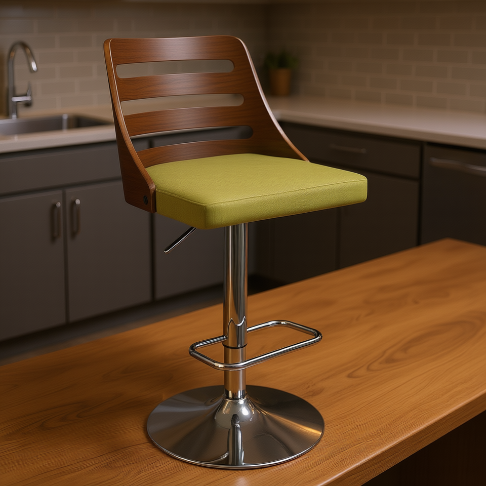 Tabouret de bar réglable Trevi Mid Century Modern, base pivotante en noyer vert, mobilier de bar