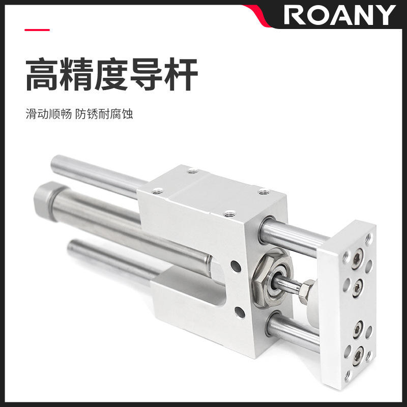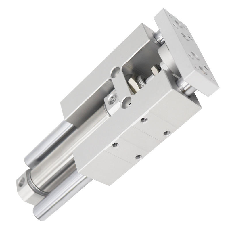 Vérin pneumatique à double action, corps en aluminium, réglable, avec amortisseur, à trois axes, à trois guides, 12 fentes, 25X50X75X100X125X150