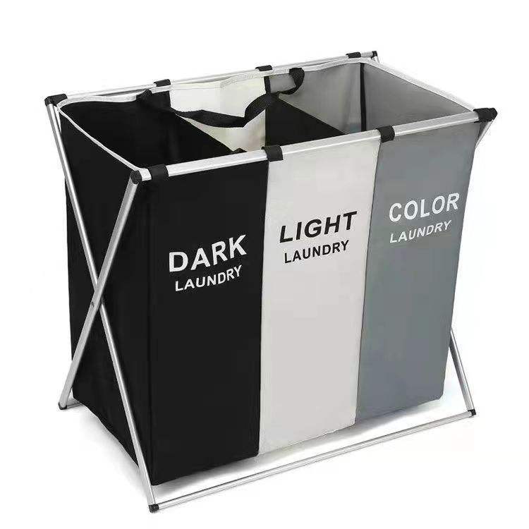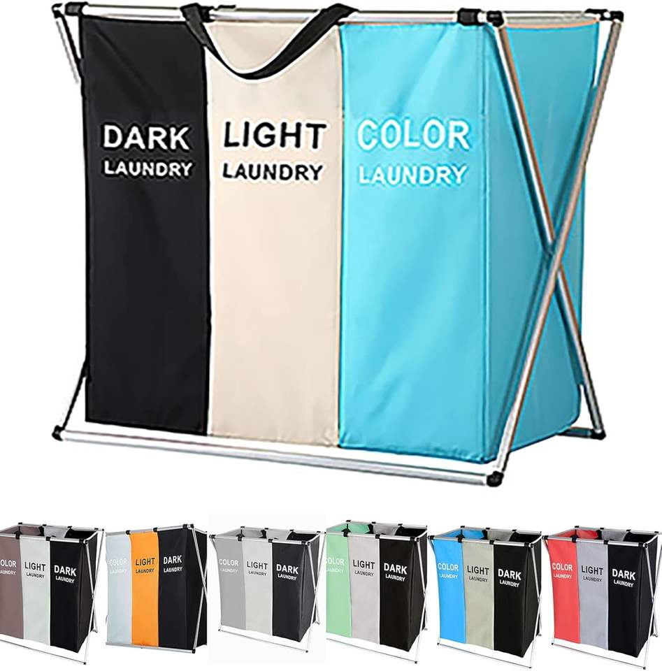 Panier à linge 3 compartiments - Trieur - Rangement - Sac à vêtements sales