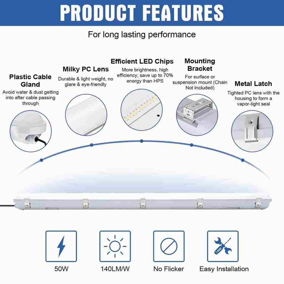 Nom du produit:T8 IP65 60cm/120cm/240cm Luminaire LED Extérieur ou Intérieur Résistant à l'Humidité