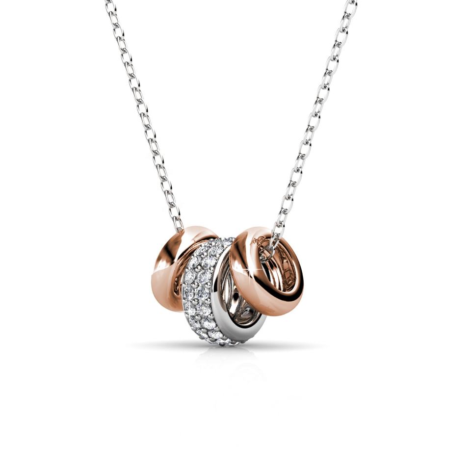 Collier pour femme Tri Ring en métal mixte orné de cristaux Swarovski, argent 925, marque de luxe Daisini