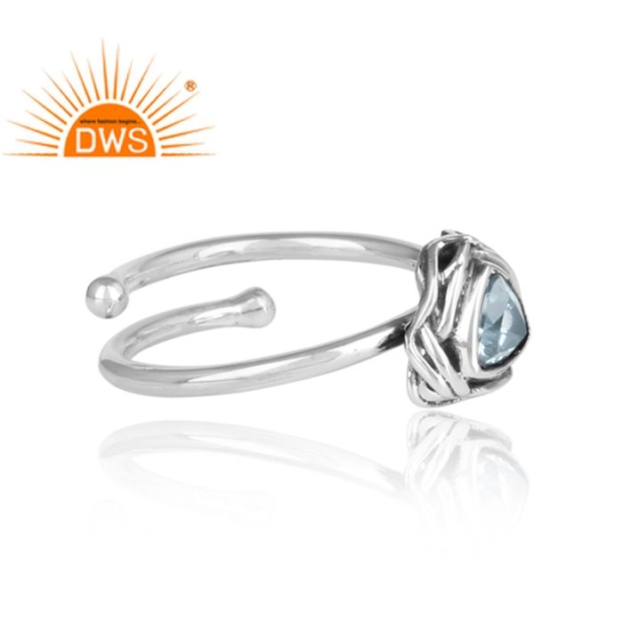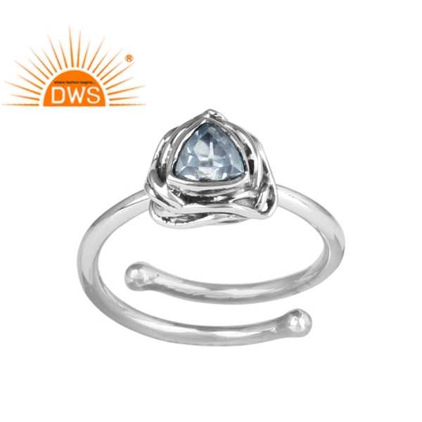 Bague en topaze bleue en forme de Triangle, pierres précieuses, argent, bijoux en argent 925, personnalisés, vente en gros