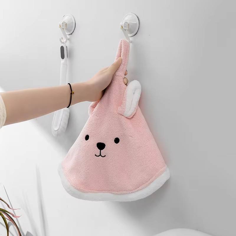 Serviette de toilette triangulaire en velours corail haute densité, motif dessin animé, forte absorption d'eau, design suspendu, douce pour la peau, pour enfants