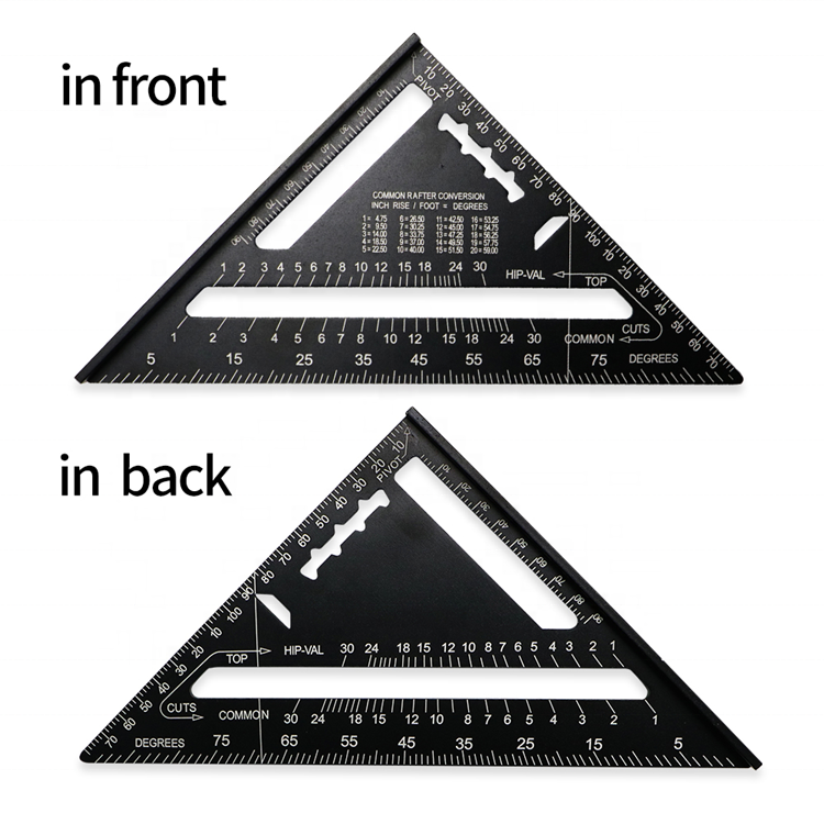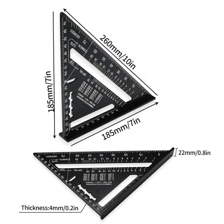 Triangle règle 7 pouces/12 pouces en alliage d'aluminium charpentier ensemble Angle carré outils de travail du bois essayer carré triangulaire métrique
